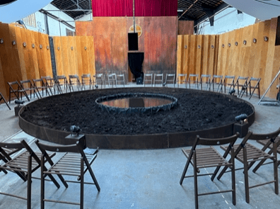 La scénographie circulaire, offre une perspective unique et stimulante, créant une expérience théâtrale immersive et captivante. Chaque personne du public est au coeur même du procès, et voit son reMlet dans celle d’en face, créant ainsi une expérience partagée d’où émane une énergie de groupe qui circule différemment.